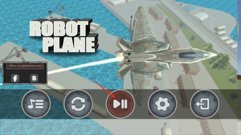 1、在Robot-Plane启动界面,点击红色播放按钮,开启机器人飞机冒险,进入游戏世界,点击开始游戏。