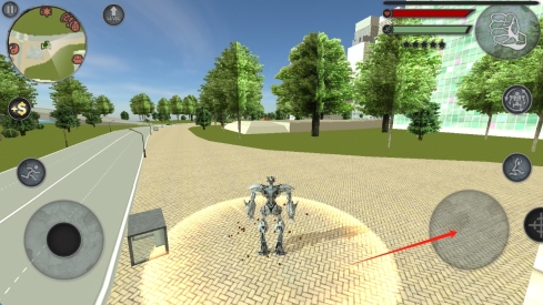 3、在机器人战斗场景,通过虚拟摇杆,灵活操控机器人移动,瞄准敌人,进行战斗,完成关卡任务,点击射击敌人。