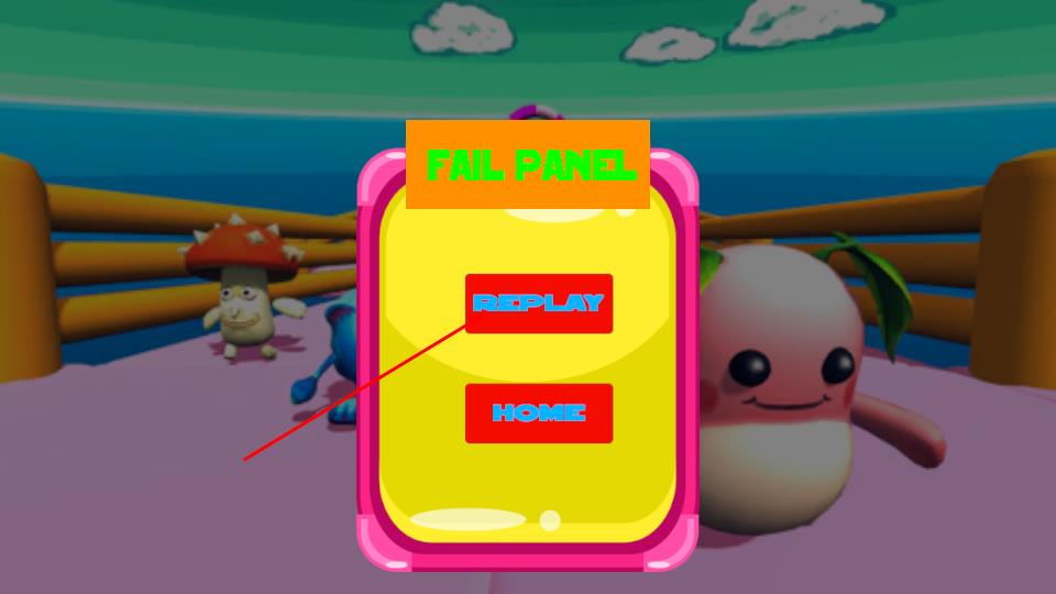 3、如果比赛失败,会出现FAIL PANEL提示框,在这时可以选择REPLAY按钮重新尝试,调整策略后再来一次;也可以点击HOME按钮返回到初始界面,争取下次成功到达终点。