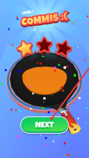 3、完成第一关涂色,依据评价根据箭头指示,点击NEXT按钮,进入下一关继续煎饼涂色游戏进程。
