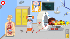3、在CT检查室场景中,操控角色躺在CT检查仪器上,按照游戏提示进行CT检查操作,完成相应的游戏任务。