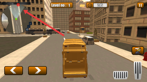 1、要留意左上角的小地图,按照红色标记的指示,驾驶黄色卡车在城市道路上前往任务目的地。