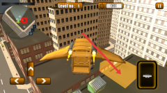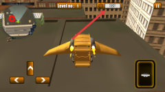 2、需要点击右侧黄色的按钮,激活飞行的模式,使卡车展开机翼升空,跨越城市建筑障碍,到达目的地。