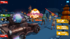 1游戏启动时,点击“PLAY”按钮即可进入。游戏的背景是一个以万圣节为主题的小镇,在这里玩家需要驾驶战车与僵尸进行战斗。