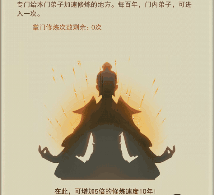 掌门练功房能在基础修炼加成的前提下,额外增加0.5倍的修炼增益,秘籍加成也能享受0.5的增益,秘籍越多,收益越是巨大。