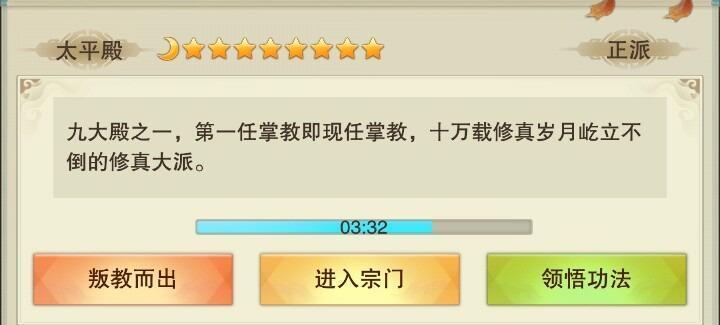 点击“叛教而出”,会根据门派的等级扣除一定的声望,使得玩家重新回到无门派的散修状态,以便再次刷自己想刷的门派。