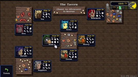 紧挨着仓库便是酒馆,在这里你可以招募自己的伙伴,酒馆内还能查看技能等各项数据。