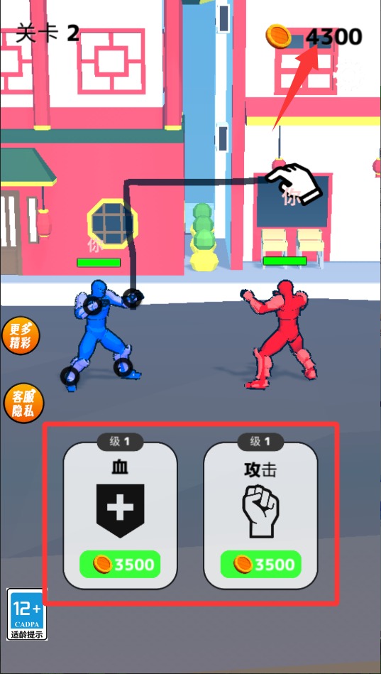 4、战胜对手后可以获得金币奖励,点击商店按钮可以提升攻击力或生命值。合理分配资源能让接下来的挑战更加轻松。