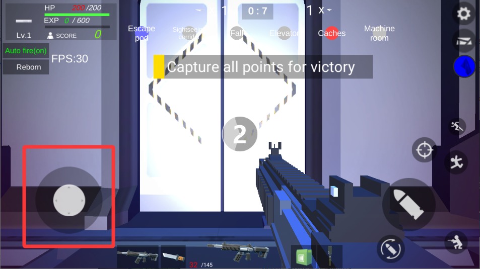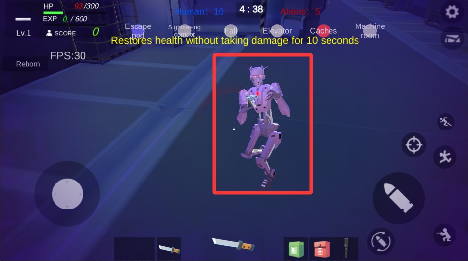 2、通过手指滑动屏幕控制角色在太空舱内移动,注意躲避障碍物并寻找最佳射击点位。