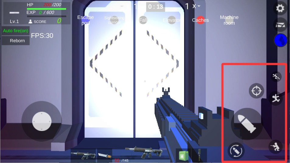 3、利用右侧虚拟按键进行精准瞄准,点击射击按钮攻击出现的异形生物,连续命中可激活特殊武器。