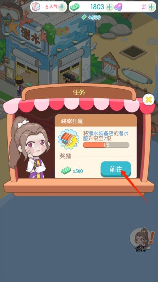 2、潜水店开业后,玩家能够通过提升潜水装备的等级来增加收益,升级可以带来更多的潜水探索机会和奖励。