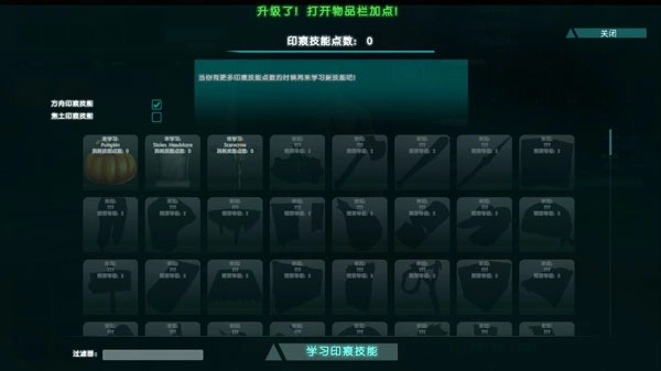 通过人物升级,玩家可以获得若干印痕技能点数,这些点数可以用来学习物品的图纸,等级越高,可学习的图纸就越多,但是玩家需要合理的分配自己的点数,首先学习自己最需要的图纸。