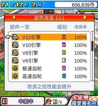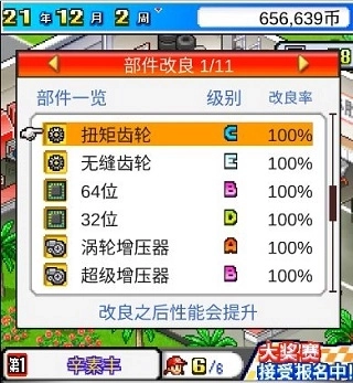 通常情况下,如果存在下一级的话,当改良车型达到50%时可以开始研发下一级,而改良配件达到80%时则可以进行下一级的研发。不过也有例外,部分车型和配件需要通过赞助商或大赛来获取。