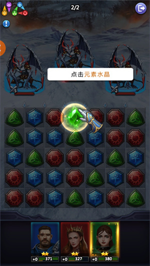 1、将传统的消消乐模式与战斗相结合,用智慧对抗,元素克制,消除连击越多伤害越高。