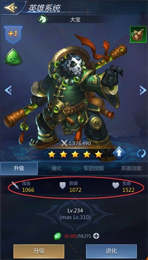 升级和强化,这个没什么好说的了,英雄等级越高,战斗力越强,达到最高等级后,我们即可将其进化来突破当前等级。