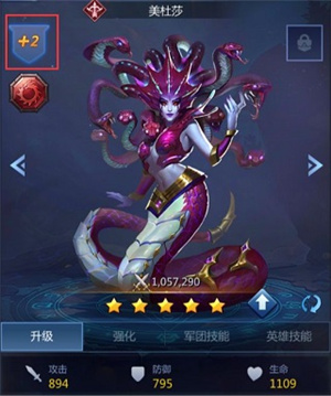 ④军团技能能够借助英雄强化来提升技能效果。英雄强化对于技能的提升十分显著,哪怕是普通玩家,获取门槛相对较低的五星英雄,实现 +1 也较为轻松,例如美杜莎。
