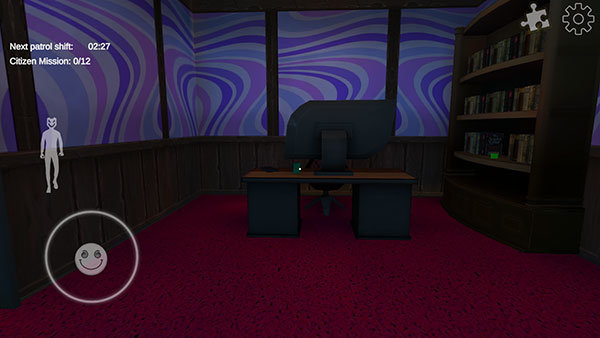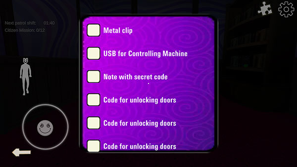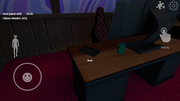 4、在游戏中,玩家可借助左下角的轮盘来操控【角色移动】;通过左侧的角色图标,能够控制角色【站立蹲伏】;而左上角的倒计时,代表着下一轮的【NPC巡逻】。