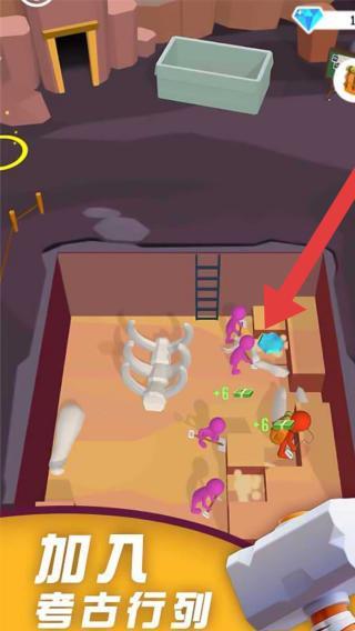 1、场景中展示了考古的画面,包括角色和挖掘元素,玩家可以体验到考古挖掘等操作。这一部分属于模拟经营或冒险解谜类的游戏片段,突出了独特的考古主题玩法。