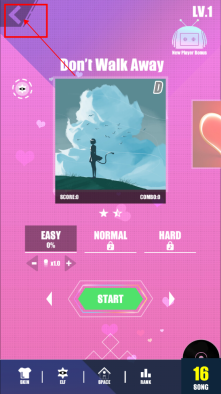 1、启动缪斯计划手游,进入游戏后默认显示游戏歌单界面,点击左上角按钮,返回游戏主界面。