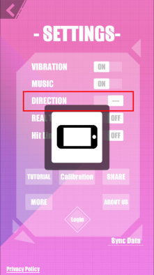 4、在direction模式下选择【一】,代表游戏的横屏。