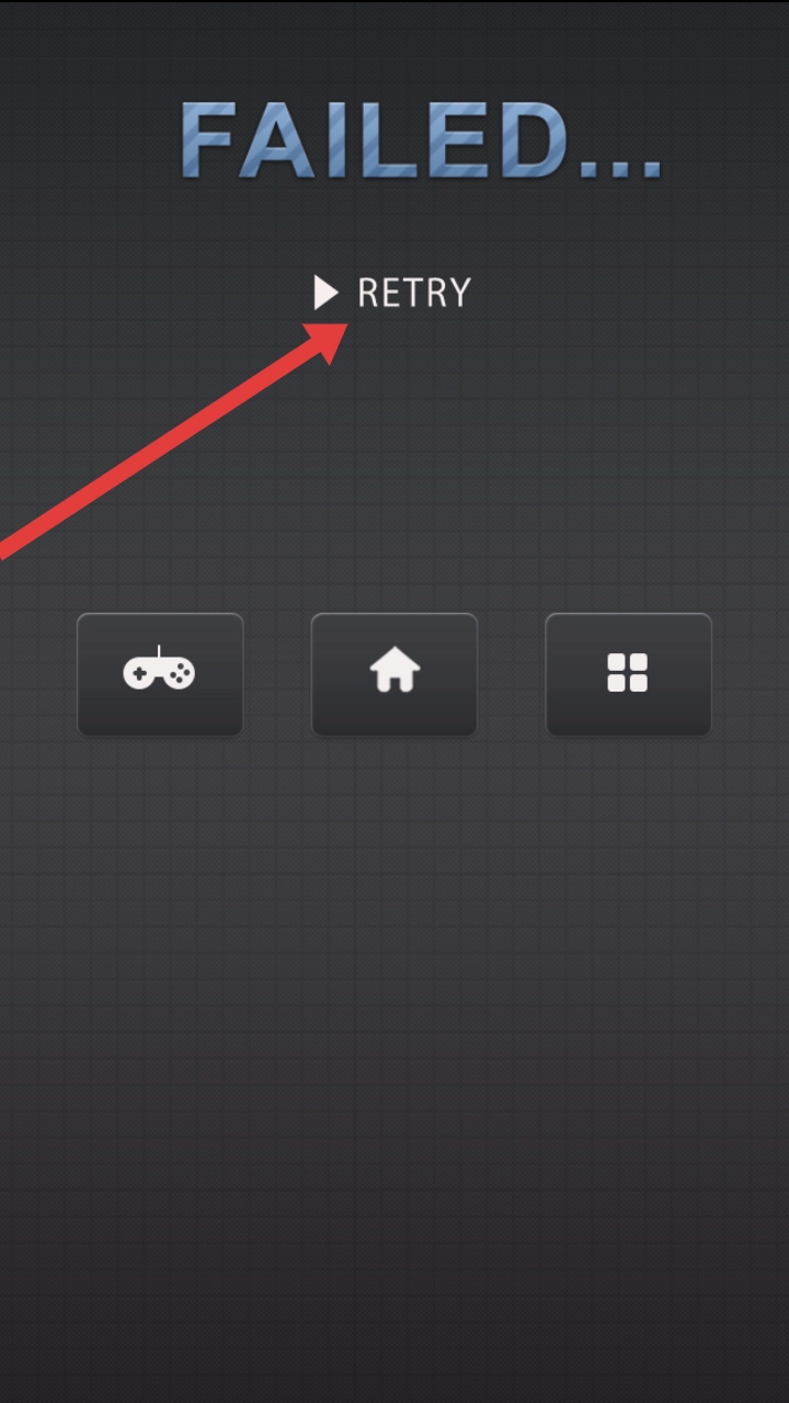 3、若操控者挑战失败,需点击箭头所指的【RETRY】按钮,重新尝试当前关卡。