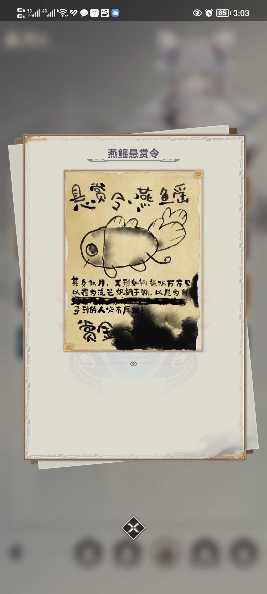从斗士手里我们知道获取消息合适的地方是悬赏栏,在这里我们揭下来了一张简笔画。同时跳出来一个小孩说揭下了悬赏就要帮他找燕鰩,消失了十年的鱼。缚月奇怪的答应了,小孩叫阿饱