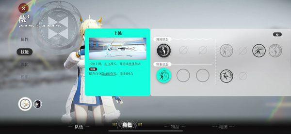 打开菜单我们还可以看到调整出战队伍的界面,不过试玩版本只有两个可用角色,未来应该还会有新的可用角色加入。