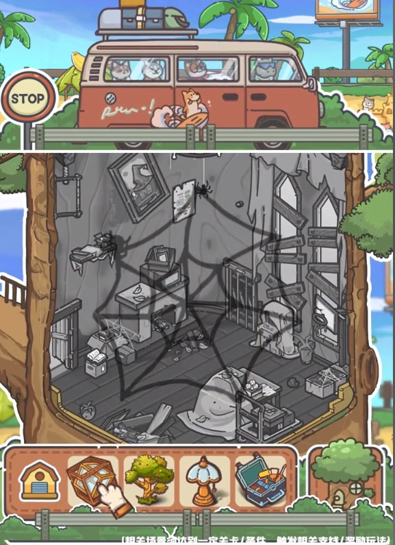 3.用足够的金币解锁家具,装饰你的树屋,打造有个性的庄园。