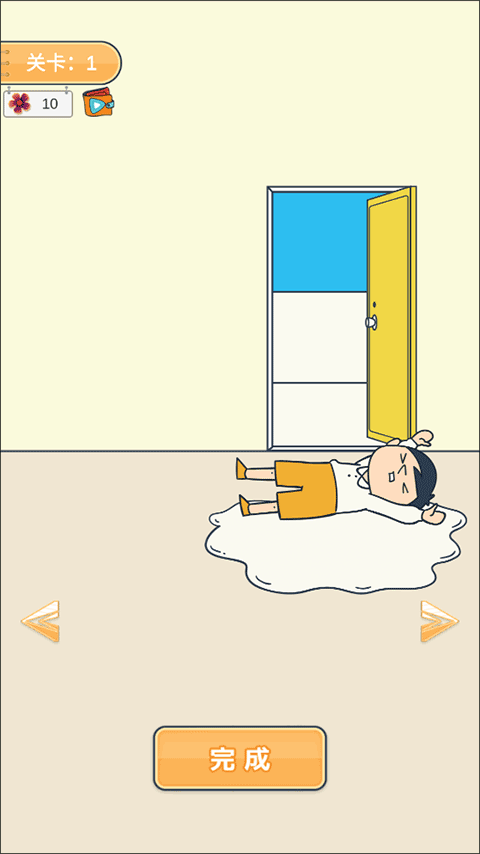 2、前往右侧场景,将橘子拖拽至妹妹身上,点击钱币,接着来到中间场景,把陷阱拖放到地面,再点击门。