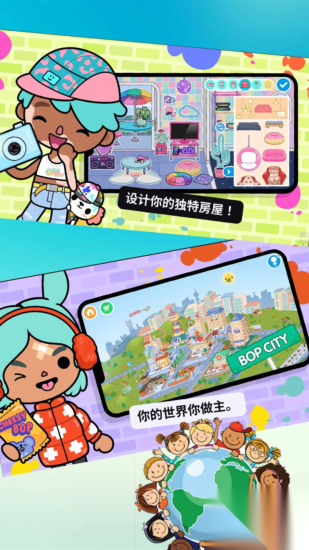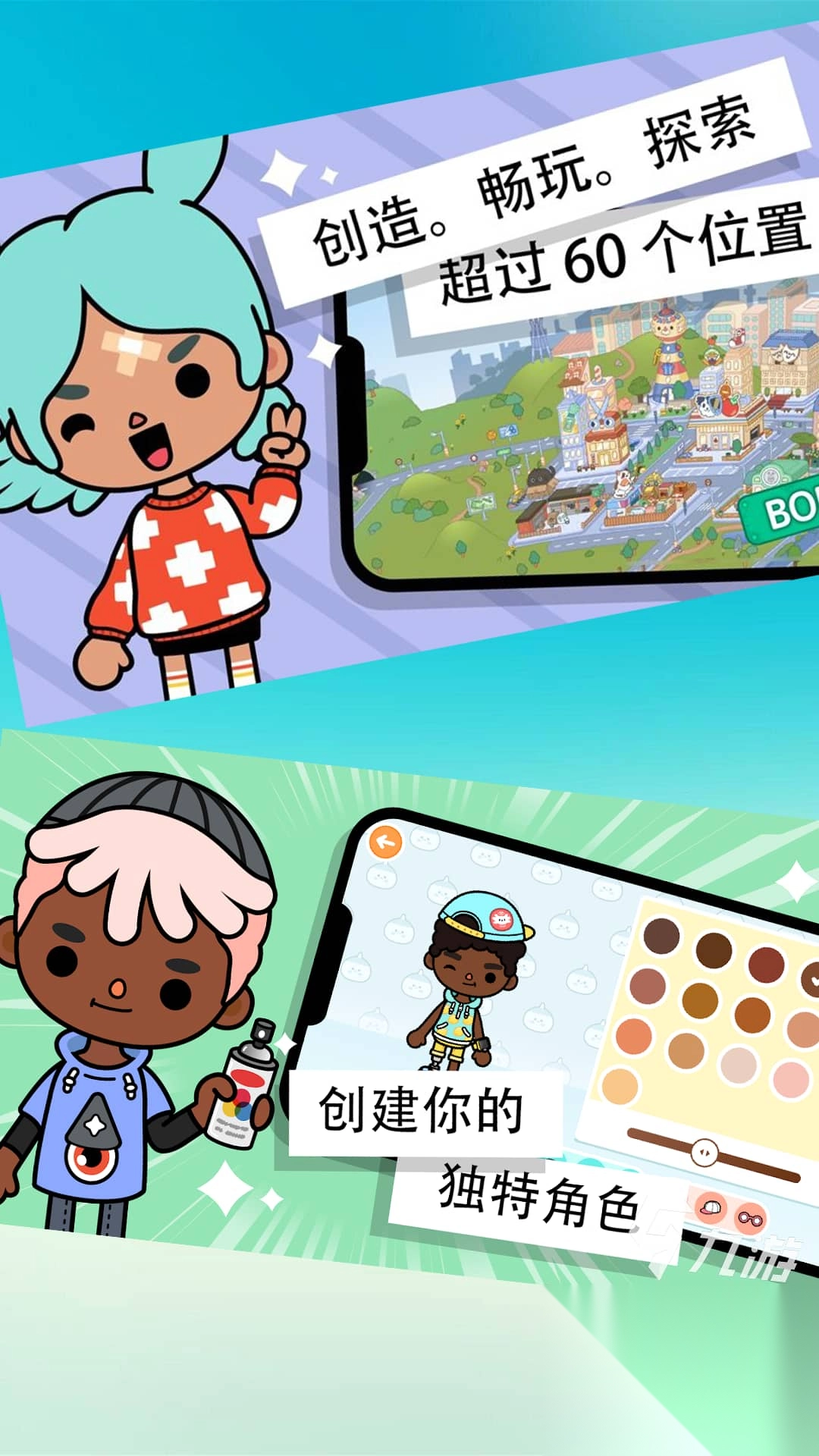 1、设计独特角色,搭配服装、妆容,同时装饰房屋和场景,打造个性化世界。