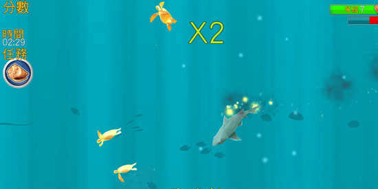 玩饥饿鲨的时候,时不时就会来一场淘金潮!一开始我没太在意,后来才明白,在淘金币阶段,要尽可能多吃金色的食物,像鱼类、海面上的鸟类之类的。当界面下方的金条币积攒满了,就会进入淘金币时间!只是淘金币的时间很短暂,仅仅持续几秒。在这淘金币热潮时段,咱们操控的鲨鱼基本处于无敌状态,哪怕是等级比自己高的鲨鱼,或是平时能致命的鱼雷,都能当作点心轻松吃掉。