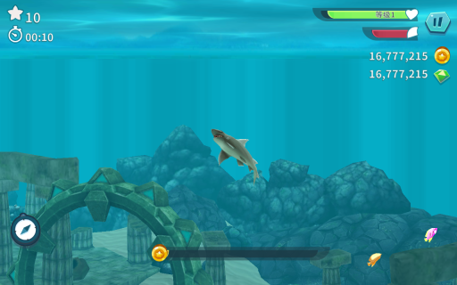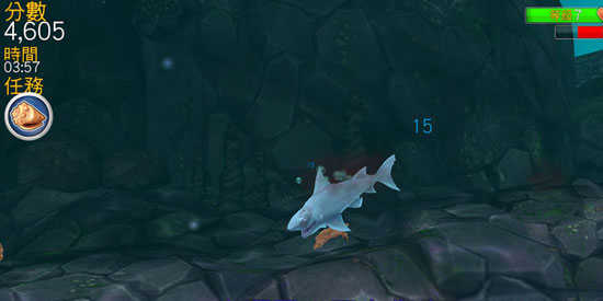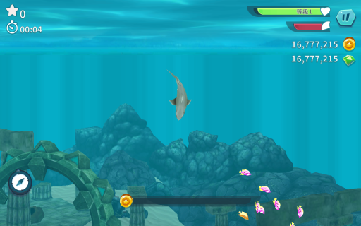 当然了,这种状态可遇不可求啊!不知道是不是我手机的问题,再加上鲨鱼目前等级比较低,在金币热潮时像个没头苍蝇一样,吃不到条鱼,因为速度慢,去深海里还没怎么吃金币热潮结束了,就惨兮兮的沦为其他大鲨鱼的点心。