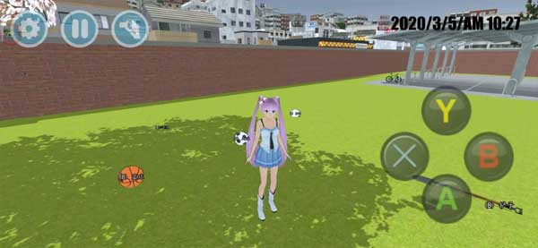5、左上角的设置可以设置超多内容:可以传送到好多个地方,可以随时随地换衣服换发型等等,可以改变天气,可以随时拥有武器,可以改变时间,头发物理是让头发随风飘荡,陀螺仪是手机摇晃镜头也会发生改变,可以设置阴影,那几个跳跃我建议大家都勾选,因为这样就可以跳的很高很高,像飞在空中一样。作者认为跳跃是最方便也很快捷的交通方式,你可以随时随地从教学楼楼顶跳到操场上,跳到街道上,选择任意地点降落,当然前提是头上没有天花板。游戏的地图不算小了,足够玩家花费一定的时间去探索。游泳池可以游泳,旁边有淋浴间可以洗澡。体育馆可以打球。