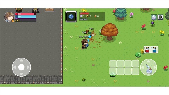 3、通过左侧控制角色移动,右侧则设有物品栏、攻击按钮和恢复道具,合理利用可以提高战斗效率。