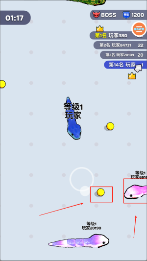 1开始时只有一条小蛇,需要通过不断吞噬地图上的食物点来增加体积,并且运用走位技巧躲避其他蛇的攻击,从而实现稳定成长。