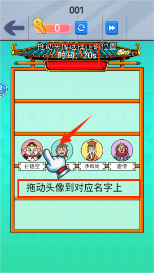 2、第二步:进入关卡,拖动头像到对应的位置。