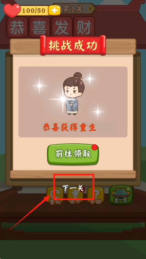 3、成功通过一关后会自动进入下一关,解锁更富挑战性的汉字谜题和成语知识。