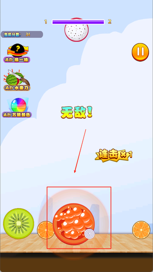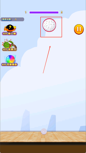 2、滑动屏幕,选取水果掉落的位置。