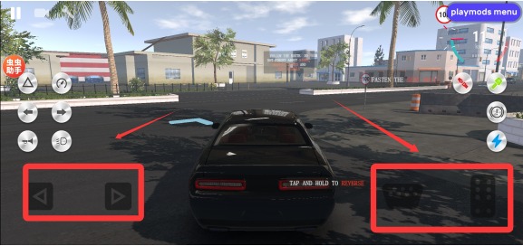 3、进入游戏后,按照地面上的蓝色标记进行驾驶,左边控制方向,右边控制车辆的前进。