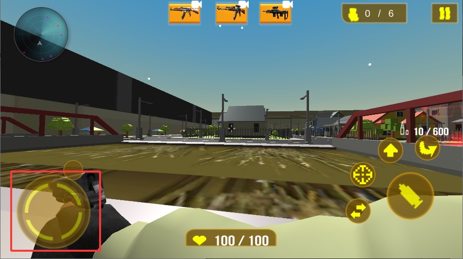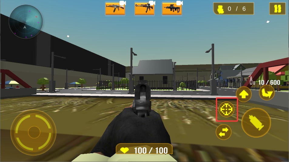 2、遇到敌人时,点击右侧的瞄准按钮切换到射击模式,此时准星会自动对准最近的目标,保持稳定以提高命中率。