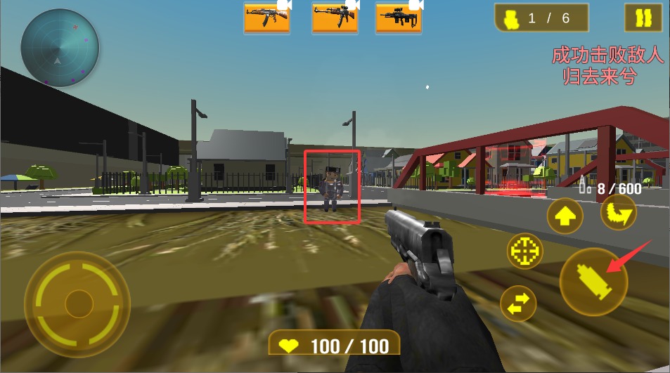 1进入游戏后,通过滑动左侧的虚拟摇杆来控制角色移动,在像素风格的战场中穿梭时,要注意寻找掩体以躲避敌方的攻击。