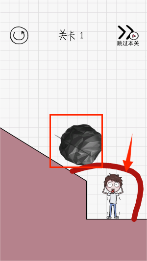 2、仔细观察关卡的地形,在石头滚落之前迅速用手指画出保护线,为小男孩建立一个安全的屏障。