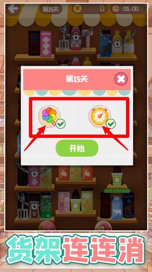 2. 利用道具加速通关:棒棒糖能够消除任意物品,秒表可以增加游戏时间。