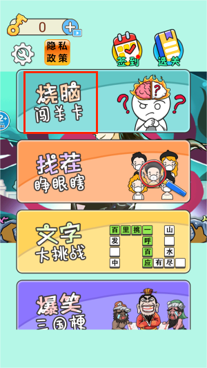 1进入游戏主界面后,选择“烧脑闯关卡”模式,开始三国主题的解谜挑战。