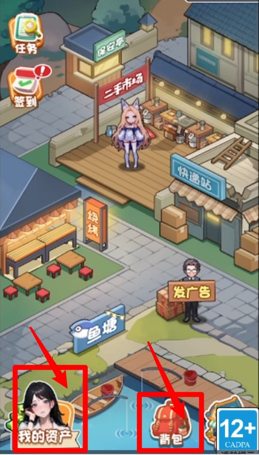 3. 查看背包与资产:点击右下角的“背包”按钮可以查看持有的物品,“我的资产”会显示金币的总览。