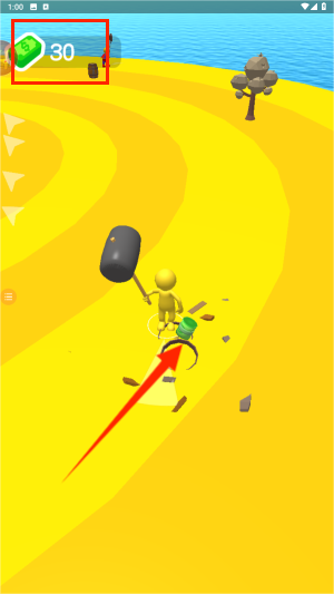 3、使用获得的锤子道具击碎场景中的果树等障碍物,成功破坏后可收集散落的金币奖励。