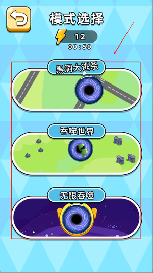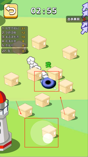 1、游戏开始后,选择匹配模式,在进入地图之后,通过左右滑动屏幕来控制黑洞的移动方向,当接近目标时,黑洞会自动进行吞噬。