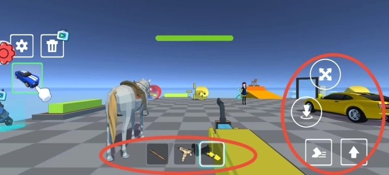 2、底部武器栏支持三种枪械切换,右侧功能键控制射击与跳跃动作,左侧触控区域实现角色移动操作。