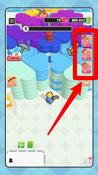 3. 增强多重效果:出货加倍、采矿增效及自动搬运这三项可以在45秒内同时叠加。