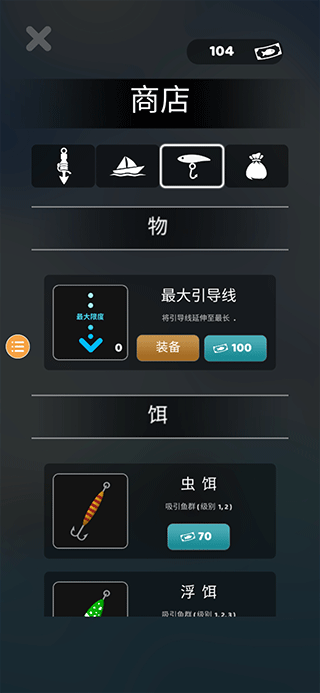 四、玩家可在商店内购买鱼叉、船只、诱饵等道具,用于捕获更为珍稀的鱼类。